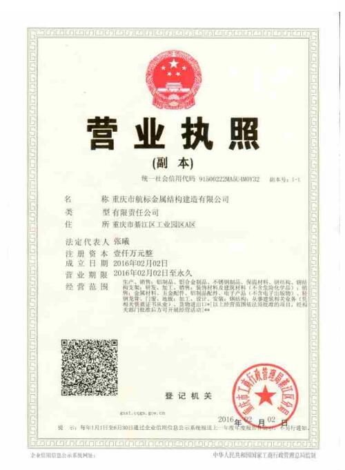 重慶市航標金屬結構建造有限公司主要生產加工三大系列產品:第一是建筑鋁幕墻、建筑新型裝飾材料,如鋁單板、雙曲面鋁單板、鋁質天花板、造型鋁質吊頂板、鋁質蜂窩板、多彩保溫隔熱裝飾一體板的整體制作,以及不銹鋼板、鐵板的成型加工及表面處理;第二是工廠標準化研發(fā)制造各種風格的輕鋼建筑和輕重鋼結合建筑,以及其它裝配式建筑,公司引進高智能化輕鋼成型加工生產線和專用軟件,集建筑設計、鋼結構設計、建筑室內外裝飾設計,鋼結構生產加工、鋼結構裝配安裝、建筑物室內外裝飾裝修全套服務于一體??蛻糁恍璞磉_所需建筑物使用功能意愿,我司即可給出多套設計方案供客戶選擇,按照客戶選定的方案進行快速、高效、節(jié)能、安全環(huán)保的加工建造。我司推出世界各國不同風格、造型各異、全精裝二到三層80——600㎡的輕鋼別墅,從設計到交付使用只需要兩個月左右即可完工;第三是公司配置了目前國內先進的開平生產線,專業(yè)致力于厚度1.0——6mm,寬度600——2000mm的鋁卷加工、銷售。